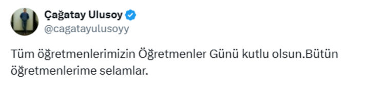 Çağatay Ulusoy: Tüm öğretmenlerimizin Öğretmenler Günü kutlu olsun. Bütün öğretmenlerime selamlar.
