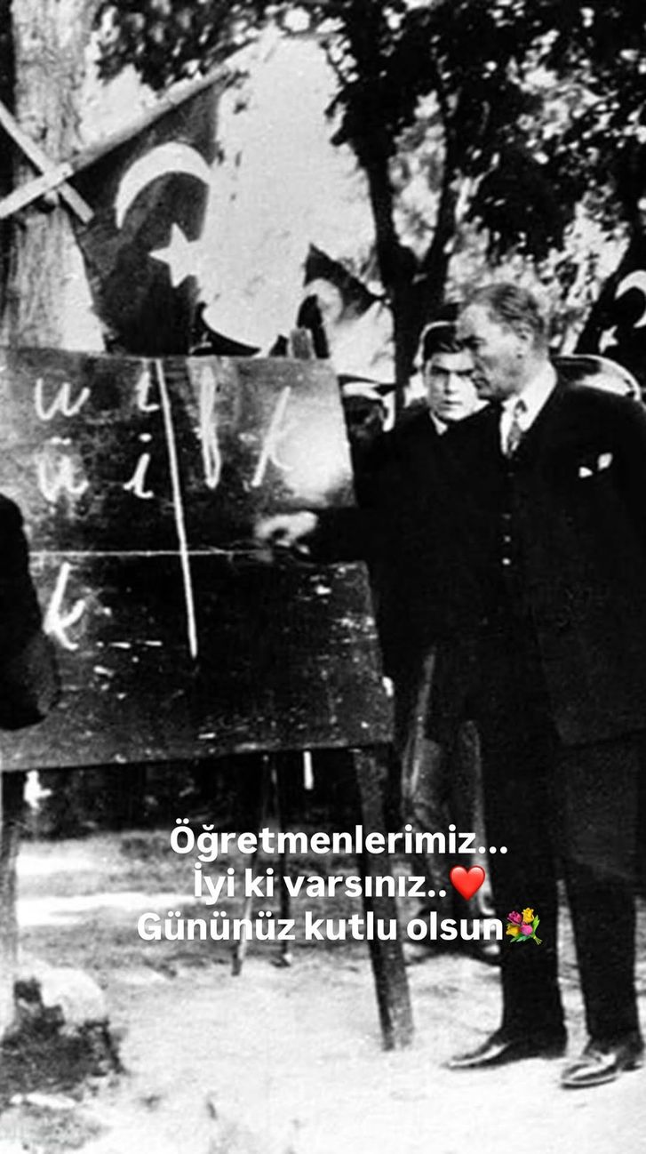 '24 Kasım Öğretmenler Günü', Mustafa Kemal Atatürk'ün 24 Kasım 1928'de 'Millet Mektepleri Başöğretmenliği' ünvanını kabul ettiği gün olarak, ulu önderin 100'üncü doğum yılı olan 1981'den beri kutlanıyor. Ünlüler, bu özel günü paylaşımlarıyla kutladı.