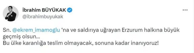 Millet İttifakı Cumhurbaşkanı yardımcısı adayı ve İBB Başkanı Ekrem İmamoğlu'nun Erzurum mitingine saldırı düzenlendi. Yaşanan olaylar sonrası bazı vatandaşlar yaralandı. Televizyon ve müzik dünyasının ünlü isimleri taşlı saldırıya tepki gösterdi