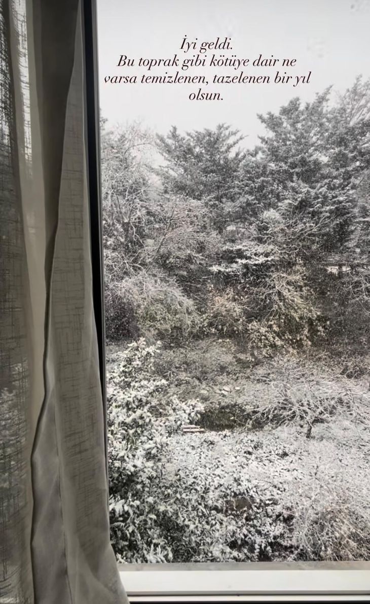 Oyuncu Deniz Barut Aksu da evinin penceresinden çektiği kar yağışını "İyi geldi. Bu toprak gibi kötüye dair ne varsa temizlenen, tazelenen bir yıl olsun" notuyla yayımladı.
