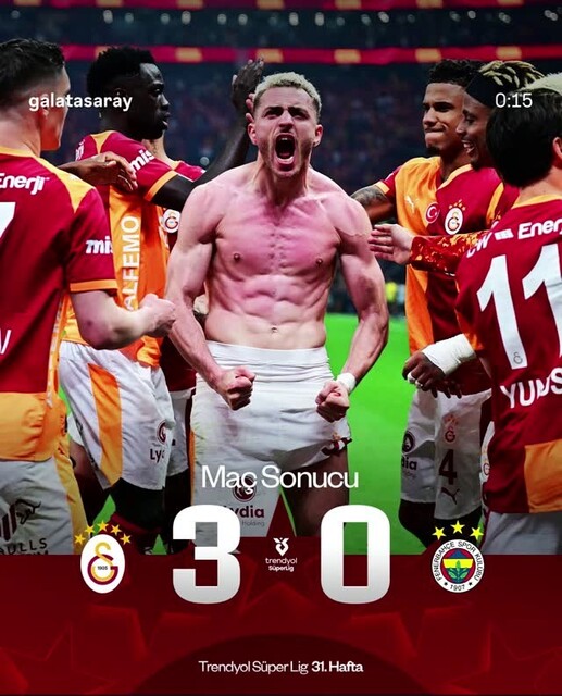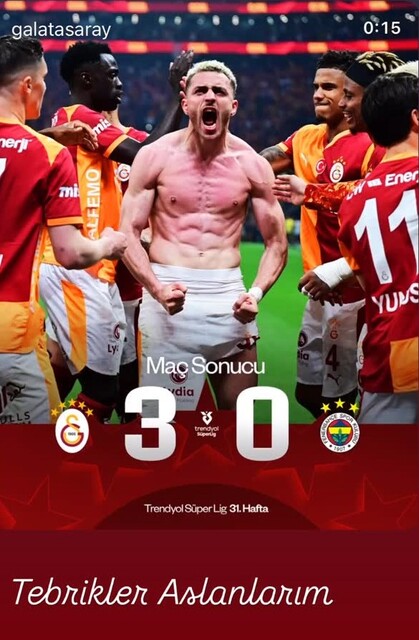 Trendyol Süper Lig'in 31'inci hafta karşılaşmasında Galatasaray sahasında Fenerbahçe'yle kozlarını paylaştı. Sarı-kırmızılılar, ezeli rakibini 3-0 yendi. Galatasaraylı ünlü isimler de sosyal medyadan coşkularını paylaştı