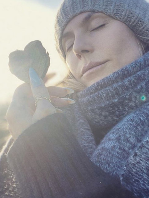 Süper model, açık havada huzurlu bir anın tadını çıkardı.