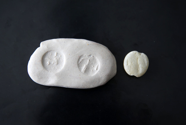 "Bu odaların içinde ok uçları, tekstilde kullanılan ağırşak ve alabesterden yapılmış mühür bulduk. Düğme şeklindeki bu mührün iki yüzünde figürler bulunuyor. Figürlerin içeriğine baktığımızda mührün yerli değil, ithal olduğunu düşünüyoruz.