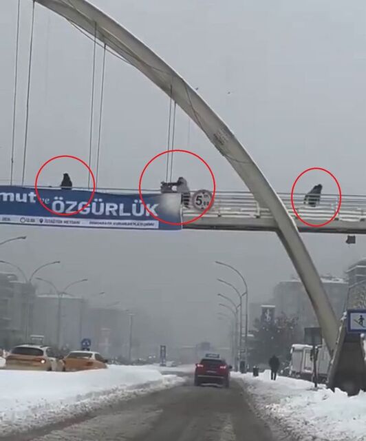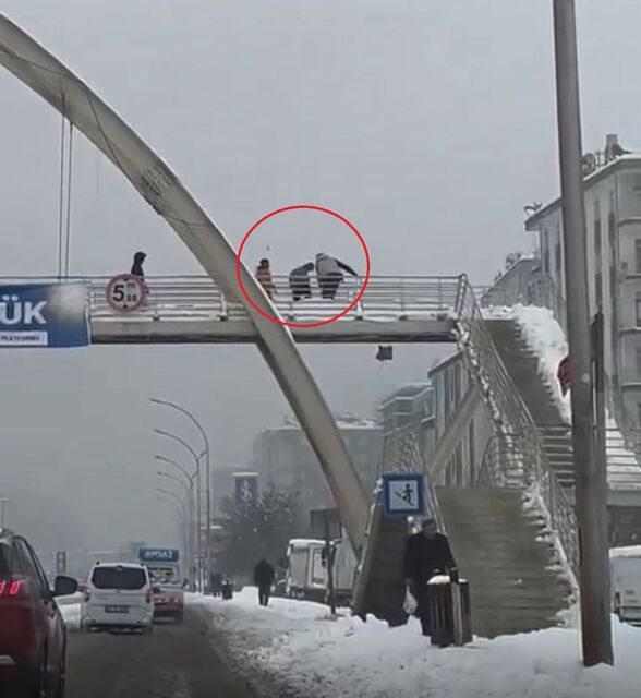 Üst geçitte kartopu atan çocukları yumruklayıp, yerde tekmeledi