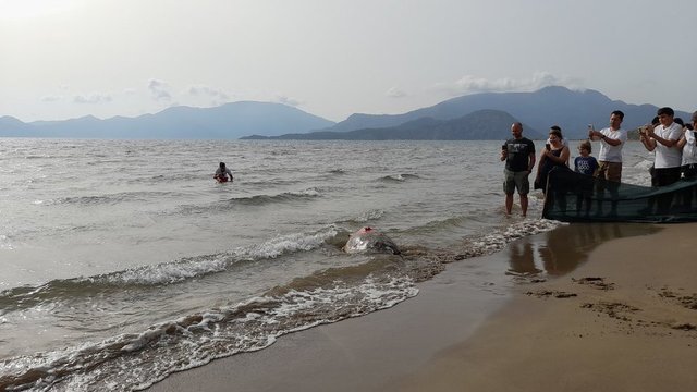 Muğla'da, Deniz Kaplumbağaları Araştırma Kurtarma ve Rehabilitasyon Merkezi'nde (DEKAMER) uydu takip cihazı takılan Türkiye 100 isimli caretta caretta, denize salındı