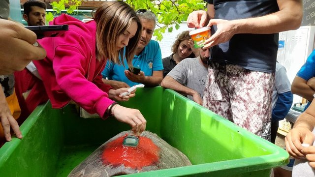 Caretta carettaya taktıkları cihazın içinde güneş paneli olduğunu belirten Kaska, "Pili bittiğinde tekrar şarj edebiliyor. Bunu, AB tarafından desteklenen Life Med Turtles Projesi çerçevesinde geliştirdik. Bunun ilk denemesini de burada uyguladık" diye konuştu.