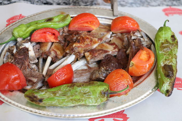 Büryan kebabı közlenen domates ve biberlerle "büryan tava"ya dönüşerek servis ediliyor.
