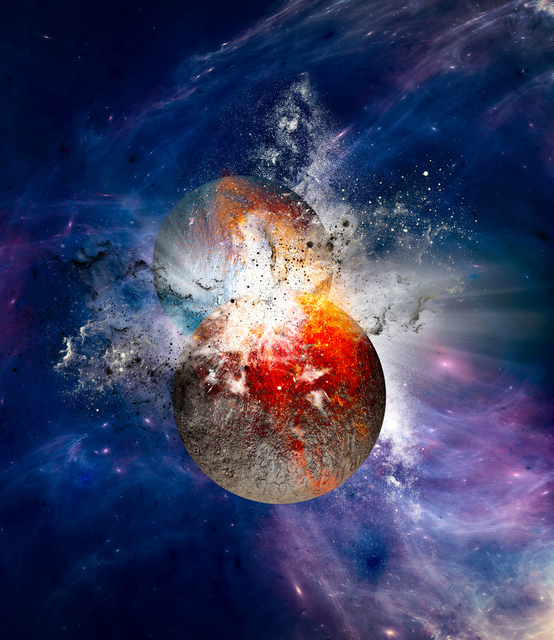 Sonunda büyük bir heyelan gibi bir şey olarak tanımlanan bir şekilde çok yavaş çarpıştılar. Heyelan tarafı Ay'ın uzak tarafı haline geldi ve bu teori Ay'ın yakın ve uzak taraflarının neden bu kadar farklı olduğunu açıklayabilir.