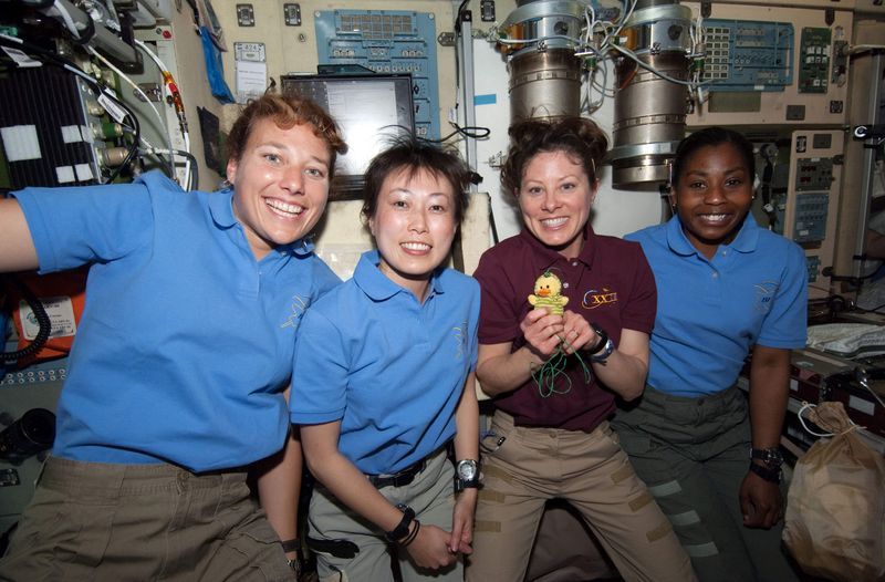 Uluslararası Uzay İstasyonu’nda 14 nisan 2010’da aynı anda 4 kadın birlikte görev yaptı. Tamamen tesadüf olan bu durum, uzayda en yüksek kadın nüfusu oldu. Discovery'nin yedi kişilik ekibi arasında NASA astronotları Dorothy Metcalf-Lindenburger, Stephanie Wilson, uçuş mühendisi Tracy Caldwell Dyson ve Japon Uzay Ajansı JAXA astronotu Naoko Yamazaki birlikte tarihi bir ana imza attılar.