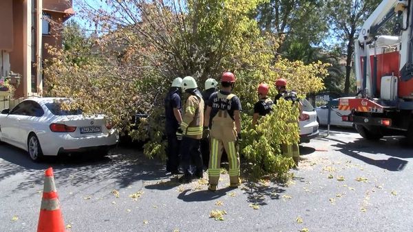 Bakırköy Florya'da park halindeki 3 araç devrilen ağacın altında kaldı.