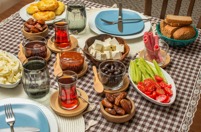 İftar sofralarına küçük porsiyon ile başlayıp 15-20 dakika ara verdikten sonra ana yemeğe geçmeyi önerdiklerini kaydeden Doç. Dr. Hakim, "Açken sofraya oturup hızlı şekilde her şeye saldırdığımızda düşük olan kan şekerimiz bir anda yükselir. Bunun yerine yavaş yavaş yükselmesini ve insülin salınımımızın dengeli olmasını sağlamalıyız.