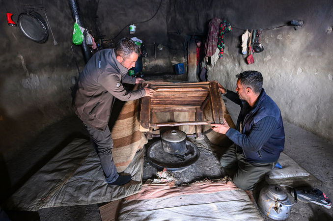 Soğuk havaların vazgeçilmezi olan kürsü geleneğiyle aile bağlarını güçlendiren mezradakiler, birbirlerine destek olarak yardımlaşma örneği de sergiliyor.