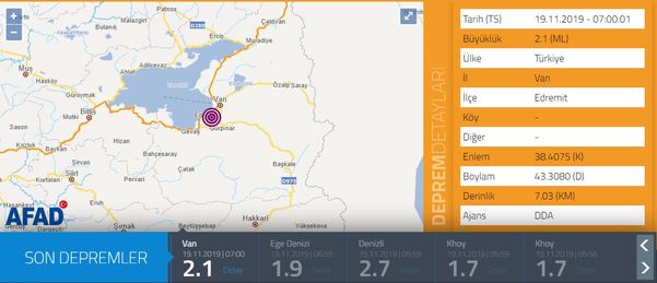 Haberler Gündem Van'da deprem! 19 Kasım Kandilli Rasathanesi ve AFAD son depremler listesi
