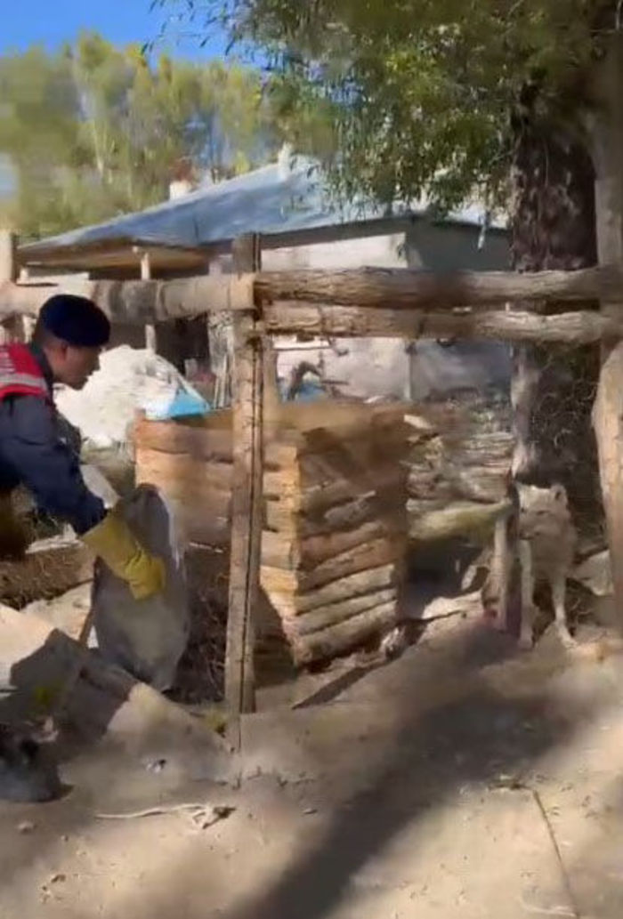 Van'da jandarma ekipleri, bir kişinin evinin önünde kapalı alanda tuttuğu kurdu kurtararak Doğa Koruma ve Milli Parklar İl Müdürlüğü'ne teslim etti