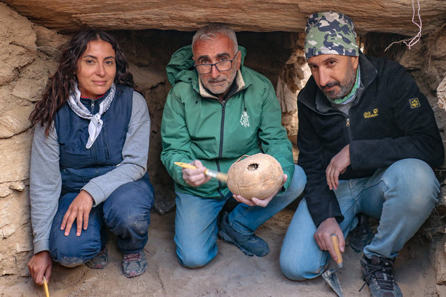 Nekropolde tespit ettikleri 7 mezarda yaptıkları araştırmada, ameliyat edilmiş yaklaşık 30 kafatası bulduklarını aktaran Yılmaz, şu bilgileri verdi: