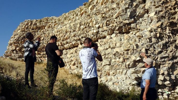 Gölün çekilmesiyle ortaya çıkan kaleyi fotoğraflayan araştırmacı-gazeteci Nihat Çavuşoğlu, yaşanan kuraklık nedeniyle tarihi Erciş Kalesi'nin ortaya çıktığını söyledi.