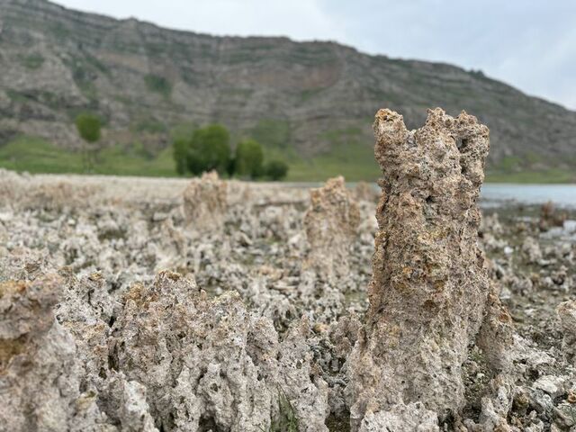Bitlis'in Tatvan ilçesinde kuraklık ve iklim değişikliği nedeniyle suyun çekilmesi sonucu Van Gölü sahili adeta mikrobiyalit tarlasına döndü