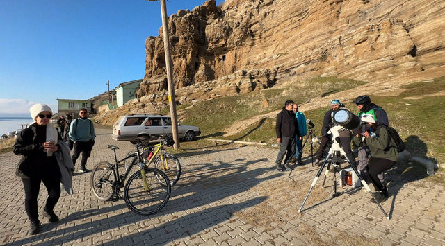 Bitlis'in Tatvan ilçesine gelen bir grup uzay meraklısı, Van Gölü kıyısında Güneş'i gözlemledi