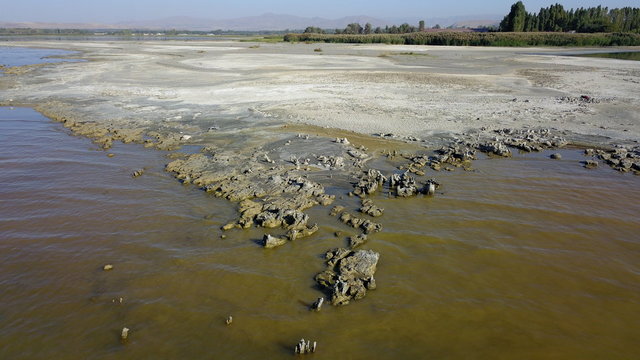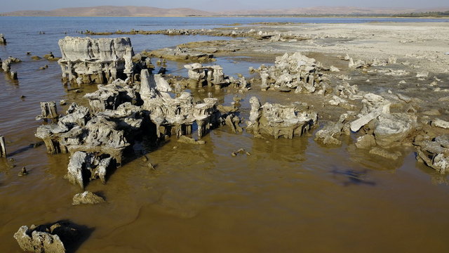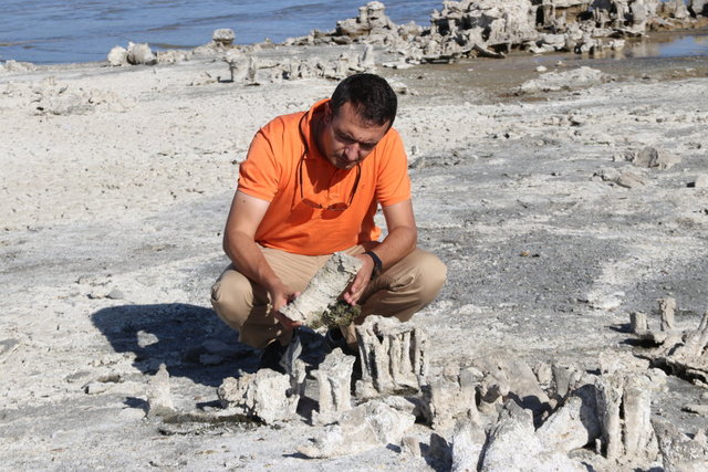 Van Gölü'nde su çekilince mikrobiyalitler görüntülendi