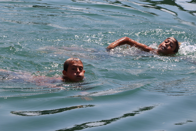 Van Gölü'nün kıyısındaki yerleşim yerlerinde yaşayan çocuklar da yaz mevsimi ile göle giriyor.