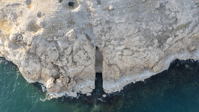 Şu ana kadar böyle bir yapıyla ilk defa karşılaşıyoruz. Bizim için önemli bir şey. Van Gölü sularının Urartu döneminde biraz daha yüksek olduğunu gösteriyor çünkü hemen altındaki çıkıntı noktası açılmamış. Ana kayaya sağlı sollu dikdörtgen şeklinde basamaklar oluşturarak göle doğru açılmış durumda."