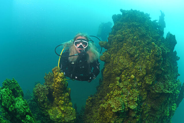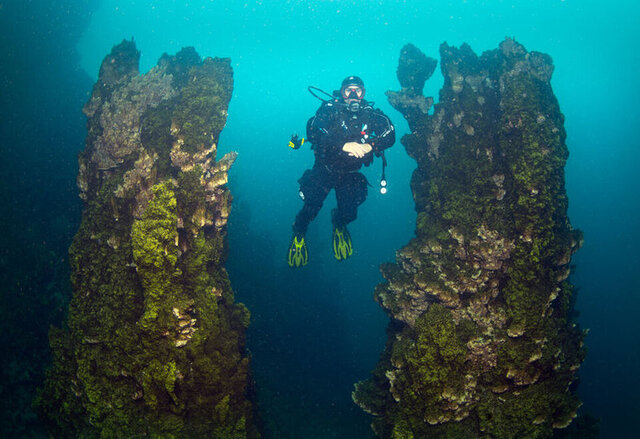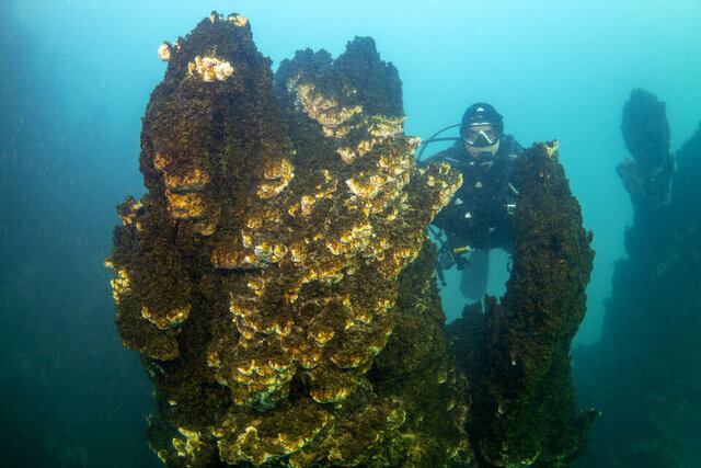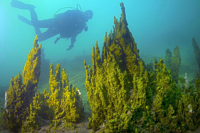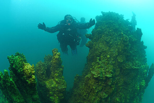 Van Gölü'nde 'Su altı peri bacaları' olarak da nitelendirilen mikrobiyalitlerin (dikitler) tekne çapaları ve pervanelerden zarar görmesinin engellenmesi için 4 noktaya şamandıra yerleştirildi