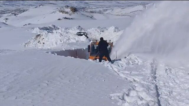 İş makineleriyle, bazı bölgelerde kardan tüneller açılarak güçlükle ilerlenebiliyor.