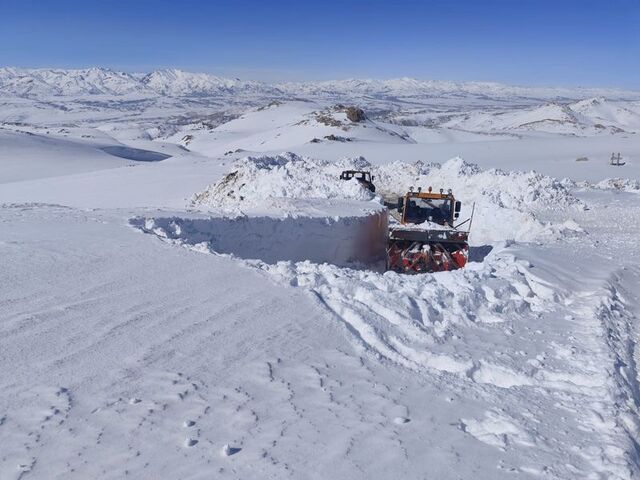 Van'ın Başkale ilçesine bağlı İran sınır hattında kışın karla kapanan askeri üs bölge yollarının açılması için yoğun çalışma yürüten ekipler, tipinin de etkisiyle yer yer 4 metreyi aşan kar kütleleri arasında güçlükle ilerliyor