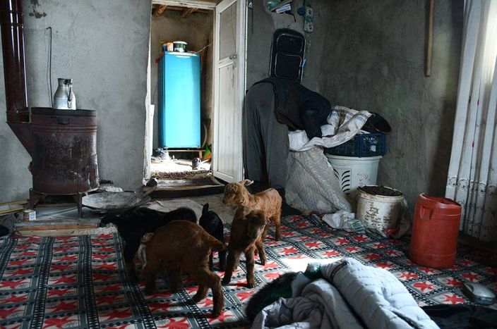 Şırnak'ın Beytüşşebap ilçesinde Faraşin Yaylası'nda kalan 65 yaşındaki Vanlı besici, 9 yıldır iki odalı kerpiç evde oğlaklarıyla yaşıyor