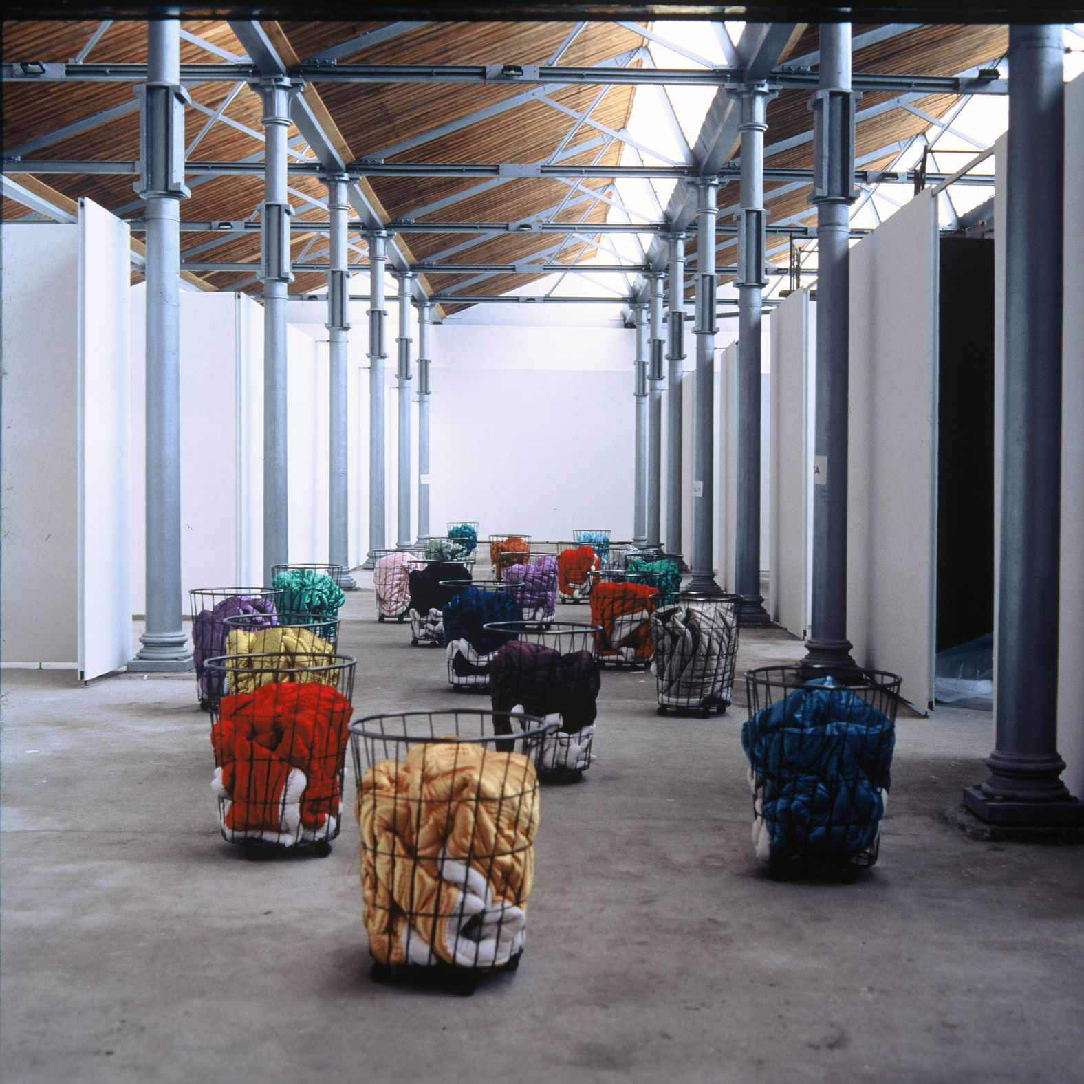 Gülsün Karamustafa, 50 yıldan uzun süredir, göç, bellek, aidiyet, kültürel kimlikler gibi toplumsal meselelere odaklanarak sanat pratiğini sürdürüyor. Sanatçının Venedik Bienali için üzerinde çalıştığı yeni eseri, dünyanın savaşlar, afetler, doğa ve çevre sorunları gibi zorluklarla karşı karşıya kalması sonucu ortaya çıkan acıları, kaybolan değerleri ve zayıflayan insan ilişkilerini ele alıyor. Karamustafa bu eserinde, günlük nesneler üzerinden yeni anlamlar yaratma geleneğini devam ettirerek, yaşanan olayların ardında bıraktığı boşluk, oyuk ve kırıklıkların izlerini, farklı objeler aracılığıyla mekâna taşımayı amaçlıyor. Sergideki yerleştirmeyle dünyayı “bir savaş alanı” ve “sürekli değişen bir zemin” olarak tasvir eden sanatçı, yapıtının bir bölümünde kadim inançlara ve insanlar arasında süregelen çatışmalara gönderme yapıyor.