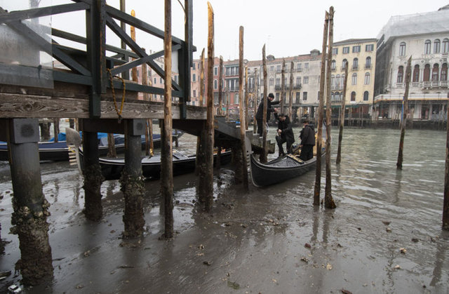 Gondolcu olarak tanınan geleneksel Venedik kanallarında taşımacılık yapan kişiler, sığ sulardan kaçınmak için rotalarını değiştirmek zorunda kaldıkları için zorluklar yaşadı.