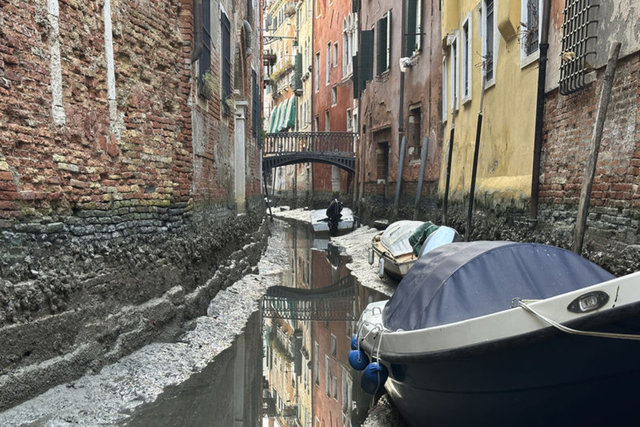 Dünya çapında yaşanan mevsim normallerinde üzerinde seyreden sıcaklıklar ve yağış oranındaki düşüş İtalya'nın ünlü kanallarını da vurdu. Venedik'in ünlü kanallarında sular çekilmeye başladı