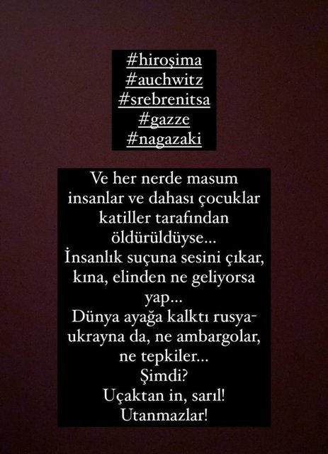 Ve her nerede masum insanlar ve dahası çocuklar, katiller tarafından öldürüldüyse... İnsanlık suçuna sesini çıkar, kına, elinden ne geliyorsa yap... Dünya ayağa kalktı, Rusya - Ukrayna'ya ne ambargolar ne tepkiler... Şimdi uçaktan in sarıl! Utanmazlar!