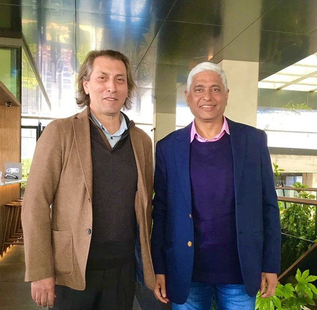 Vikas Sworup, ünlü oyuncu Sidney Poitier ile görülüyor.