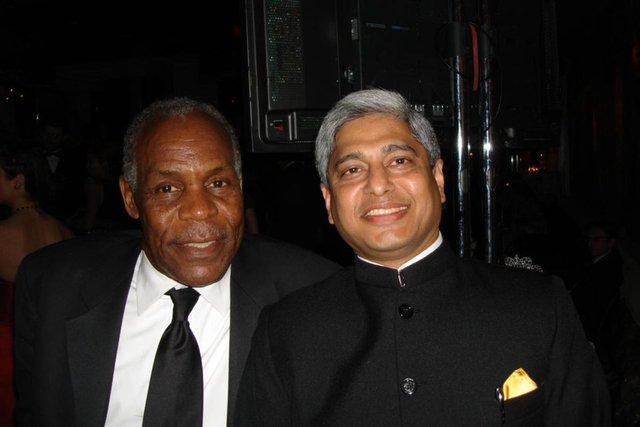 Ünlü oyuncu Dany Glover ile Vikas Swarup 2009'daki Oscar töreninin partisinde görülüyor.