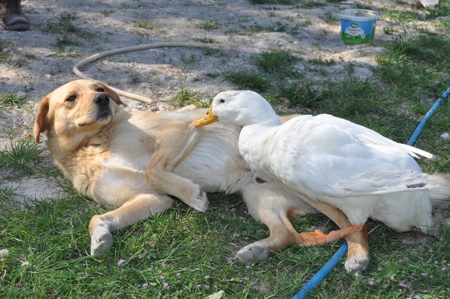 Aynı yerde barındırdığı ördeği ve köpeğin zamanla birbirlerine alıştıklarını anlatan Aktaş, "Ördek ve köpek kümeste tel örgünün içerisinde duruyordu. Zamanla birbirlerine alıştılar. Bir gün bir baktım Çarli bağlı olduğu zincirinden boşanmış ve kümese girmiş Viki ile oynuyor." diye konuştu.