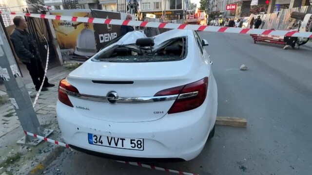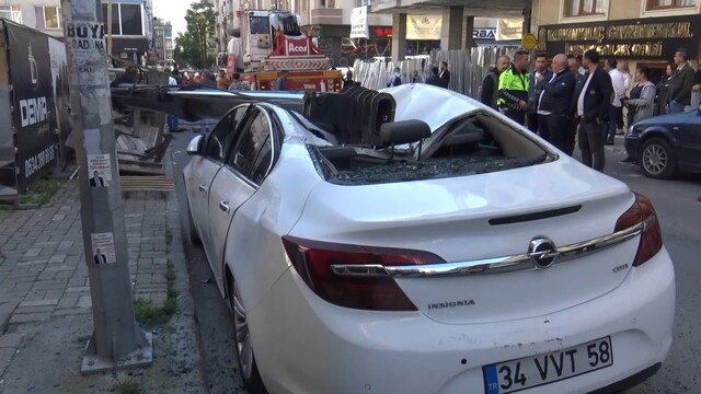 Vincin taşıma görevi gören tonlarca ağırlıktaki parçası ise sokakta park halinde bulunan Hasan Keskinkılıç'a ait otomobilin üzerine düştü.