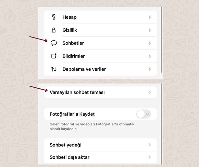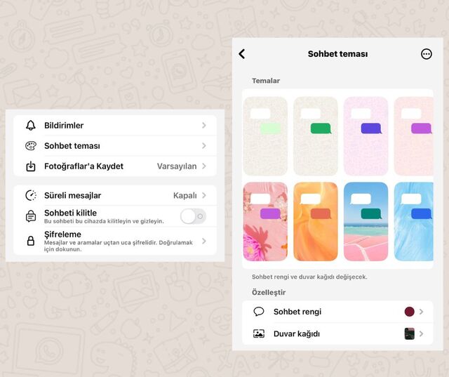 Ardından, Ayarlar > Sohbetler > Sohbet Teması sekmesine giderek dilediğiniz temayı seçebilir ve anında uygulayabilirsiniz.