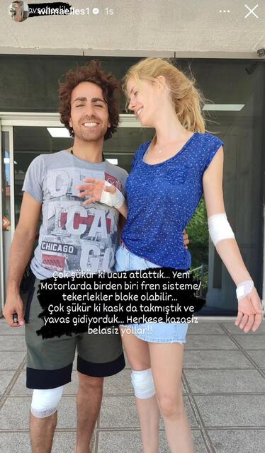 Motosikletten düşen Wilma Elles, kenisinin ve eşi Mehmet Şah Çelik'in yaralandığını açıkladı.