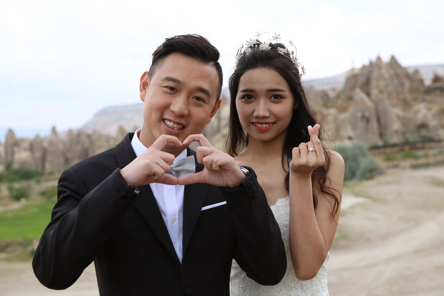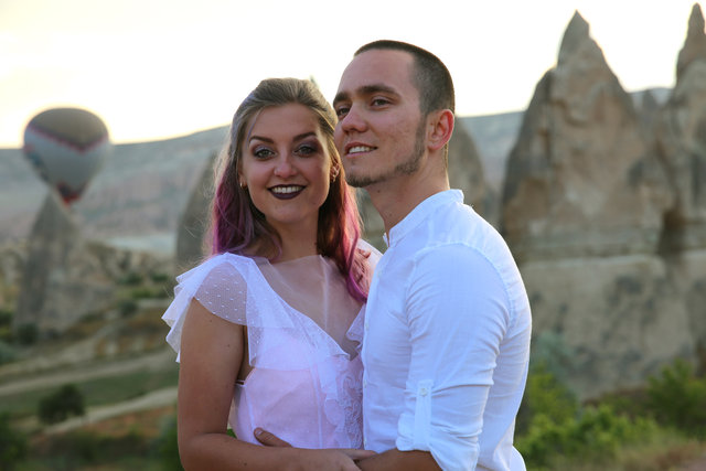 Sıcak hava balonu turuna katılarak Kapadokya semalarında da objektif karşısına geçmeyi planladığını anlatan Jacky, "Düğünden önce güzel bir manzarada fotoğraf albümü oluşturmaya karar verdik. Kapadokya'nın doğal güzelliklerini görünce doğru yer burası diye düşündük. Dünyada çok turistik mekan var ama Kapadokya oldukça ilginç ve harika bir yer." dedi.