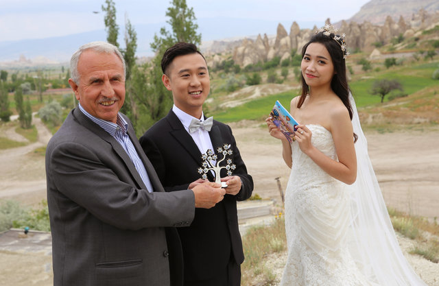 Çeşitli alanlarda çekim gerçekleştiren yabancı çiftleri ziyaret ederek kendilerine yöresel ürünler hediye ettiklerini anlatan Durmaz, Kapadokya'nın, balayı turizmi açısından dünyanın önde gelen turizm merkezi olma yolunda ilerlediğini de sözlerine ekledi.