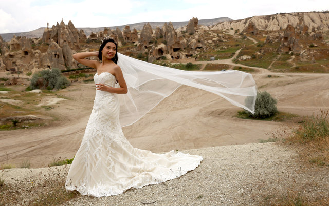 Doğal güzellikleri, tarihi ve kültürel zenginlikleriyle konuklarına masalsı bir görsel sunan Kapadokya bölgesi, düğün fotoğrafı çektirmek isteyen yabancı gelin ve damatların gözde mekanı haline geldi.