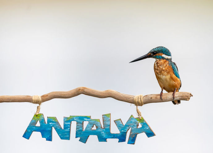 Kuş gözlemcisi Mustafa Erturhan, Antalya Kuş Gözlem Kampı için hazırladıkları 'Antalya' yazısının yer aldığı tüneğe konan bir yalıçapkınını fotoğrafladı.