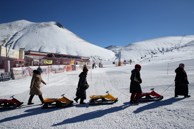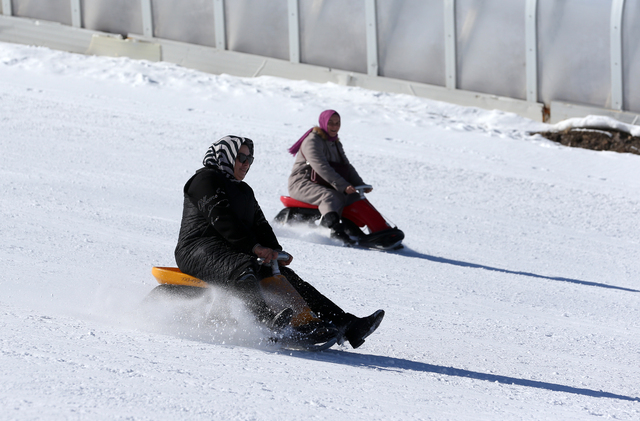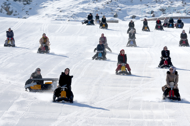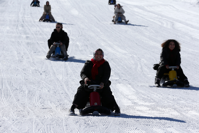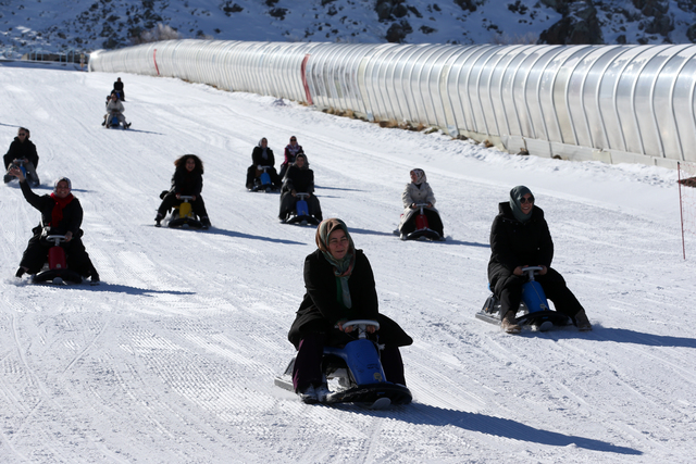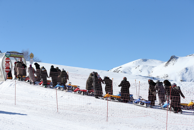 Kayak merkezinde doyasıya eğlenen kadınlar, kızakla kaydı, sucuk ekmek yedi, teleferiğe bindi, müzik eşliğinde halay çekip fotoğraf ve videolarla bu anları ölümsüzleştirdi.