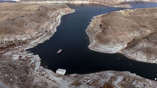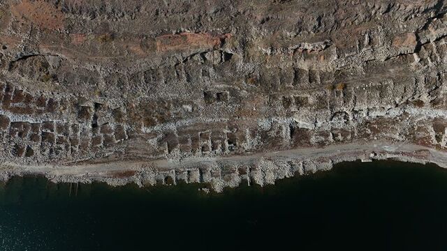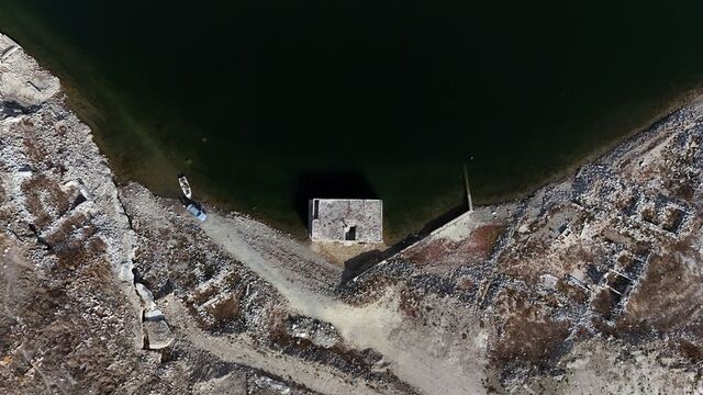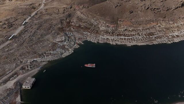 Kayseri'nin Kocasinan ilçesinde bulunan Yamula Barajı'nda da kuraklık nedeniyle sular çekilirken, su altında kalan eski Kuşçu köyünün kalıntıları gün yüzüne çıktı.