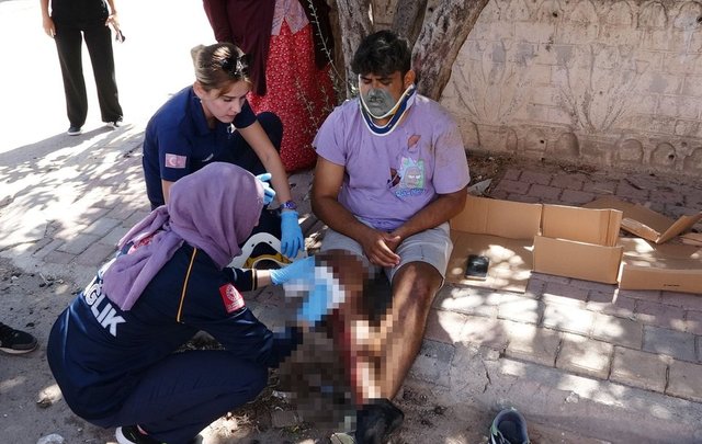 İhbar üzerine kaza yerine sağlık ve polis ekibi sevk edildi. Sağlık ekipleri, İbrahim M.'ye hafif ticari aracın üzerinde müdahale etti. Müdahalenin ardından sedyeye alınan İbrahim M., ekipler tarafından indirilip, ambulnasa götürüldü. Hastaneye kaldırılan İbrahim M. ve Kabak'ın sağlık durumlarının iyi olduğu bildirildi.
