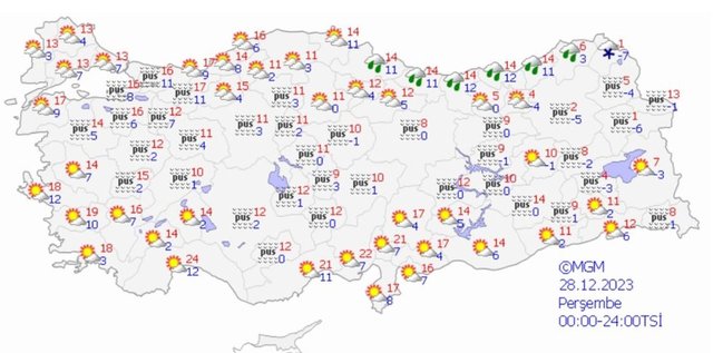 Yarın hava durumu nasıl? 28 Aralık Perşembe günü için plan yapacaklar merakla bu sorunun cevabını araştırıyor. Peki yurt genelinde yarın hava durumu nasıl olacak? İşte merak edilip araştırılan Meteoroloji Genel Müdürlüğü 28 Aralık hava durumu raporu...