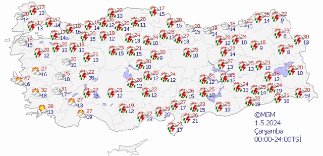 1 MAYIS ÇARŞAMBA TÜRKİYE GENELİNDE HAVA NASIL OLACAK?