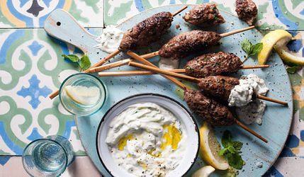 Hazırlanışı: Hıyarı rendeleyip tuzlayın ve yarım saat dinlendirdikten sonra suyunu iyice süzerek sarmısağı, zeytinyağını, limon suyunu ve naneyi ekleyin. Hepsini yoğurda kattıktan sonra hazırladığınız bu karışımı bir saat buzdolabında bekletin. Bu arada köfte için soğanı ve sarmısağı yağda kavurun, baharatları katın. Maydanoz ve kıymayı da ekleyerek iyice karıştırın. Sonra 12 eşit parçaya bölün ve her parçayı elinizle yuvarlayarak şişe takın. Bir saat kadar kapağını kapatıp buzdolabında dinlenmeye bırakın. Tavayı iyice ısıtın. (Barbeküyü de tercih edebilirsiniz.) Köftelere hindistan cevizi yağı veya tereyağı sürerek tavaya veya barbeküye yerleştirin. Her iki yüzlerini renkleri dönünceye kadar üçer dakika pişirin. Tabaklara alıp önceden hazırladığınız cacıkla beraber servis edebilirsiniz.