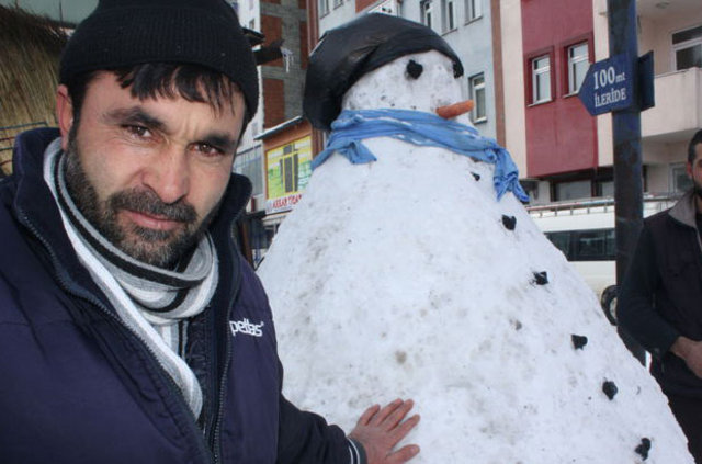 Hayatı olumsuz etkileyen kar yurdum insanına sanat yaptırıyor. İş yapamayan esnaf kardan adam yapıyor.